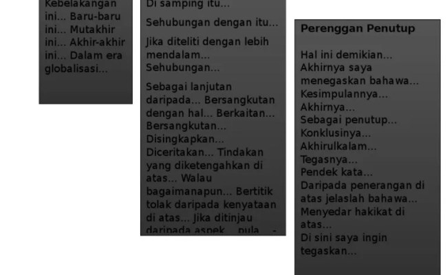 Penggunaan penanda wacana yang baik akan menjadikan pengaliran idea lebih jelas dan mudah difahami. Oct 03, 2021 · → →. Koleksi karangan bahasa melayu, bahasa inggeris (english essays), bahasa arab: Antara, (untuk perenggan kedua) 2. Suddenly, all at once, instantly, immediately, quickly, directly, soon, as soon as, just then, when, sometimes, some of the time, in the meantime, occasionally,.